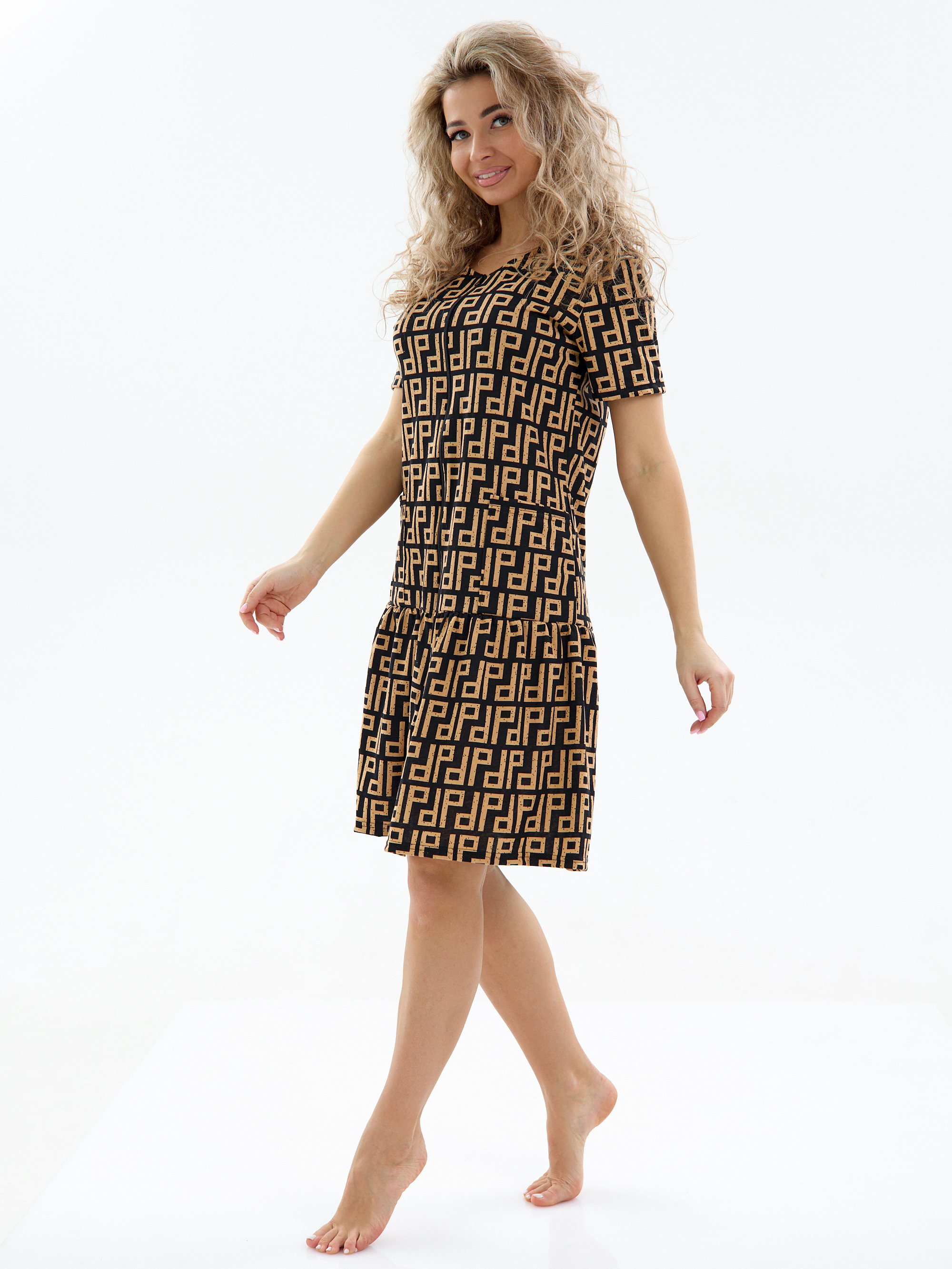 Женский халат из кулирки на молнии Орнамент